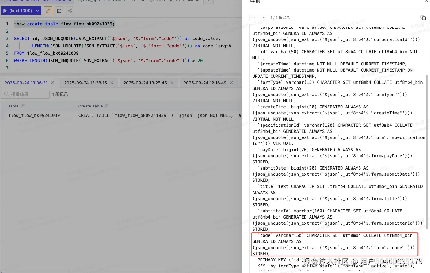 code字段定义为code varchar(20) ........VIRTUAL,但数据超长了。