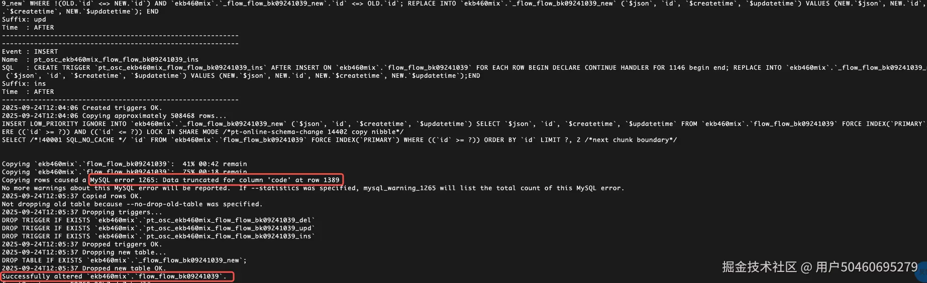 比如code字段本来长度是code varchar(20) ........VIRTUAL类型,在--dry-run命令没有报错,--execute命令后发现被截断了,但是添加列依然成功了。这个报错不影响,因为在查查询时会再生成。