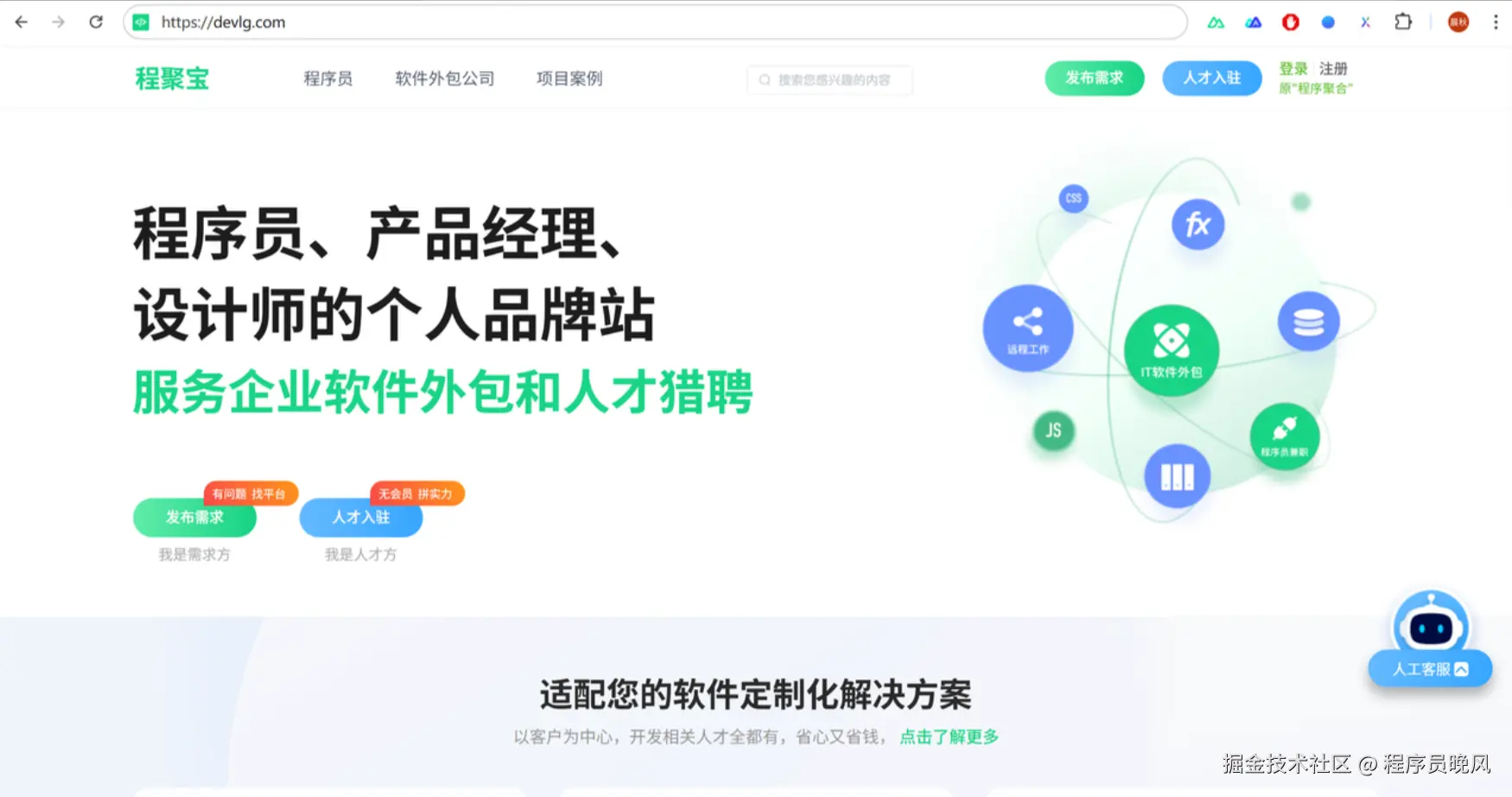 程聚宝 ( devlg.com ) 是近年来成长很快的新一代软件外包平台,主打人工筛选项目、低抽成、人工仲裁。 它的亮点在于人工审核机制,所有需求都会经过人工审核和过滤,低质量、虚假或预算不合理的项目直接被拒。平台不收会员费,抽成比例是市面很低的。出现纠纷时会有人工仲裁介入,比起单纯靠算法要人性化。