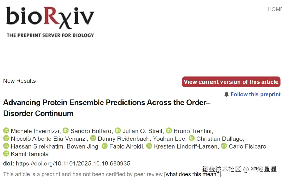 相关研究成果以「Advancing Protein Ensemble Predictions Across the Order–Disorder Continuum」为题,已发表预印本于 bioRxiv。