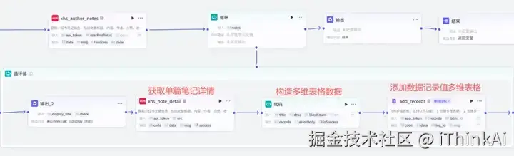 循环处理获取的笔记数据,写入多维表格,为保障并行稳定性,不使用批处理节点。