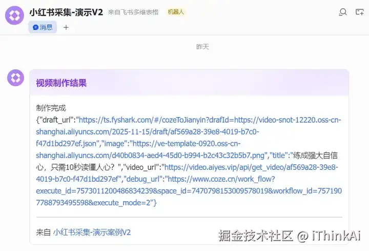 •用Coze接入视频工作流批量创作视频,多维表格触发,自动制作并推送结果