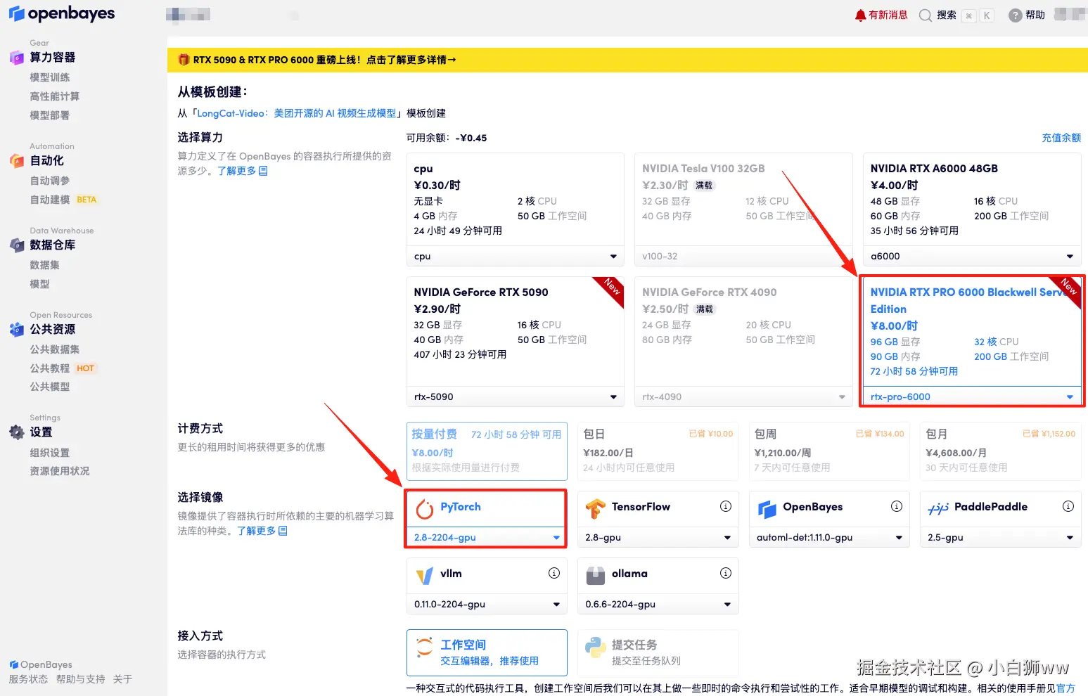 使用云平台: OpenBayes