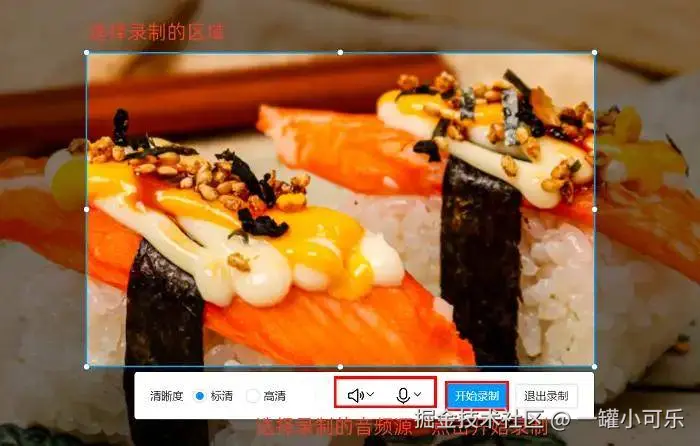 步骤2:接下来就是细节设置环节!先确定录制范围:是选择全屏录制,还是手动拖拽框选,只录制特定区域?然后配置音频选项:录制电脑内部声音,勾选 “系统声音” ;若需要添加个人解说,再同时开启 “麦克风声音” 。
