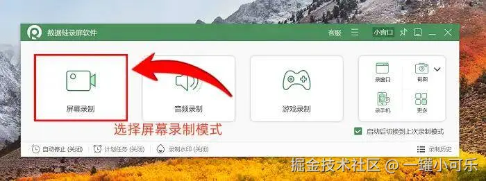 步骤1:首先打开数据 蛙录屏软件,进入主界面后,就能看到各类录制模式选项,根据自身录屏需求选择即可。今天小编先以常用的 “屏幕录制” 模式为例进行讲解。
