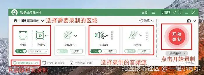 如果你没时间等到录制结束,还能开启 “按时长录制” 功能,提前设定好录制时长,软件会自动完成录制并停止,让你可以安心处理其他事情,是不是超省心?所有参数设置完毕后,点击 “开始录制” ,就能正式启动录屏啦!
