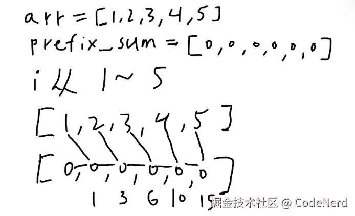# 输出结果: 前缀和数组: [0, 1, 3, 6, 10, 15]