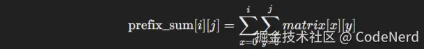 即,prefix_sum[i][j] 表示矩阵中从 (0, 0) 到 (i, j) 的所有元素之和。