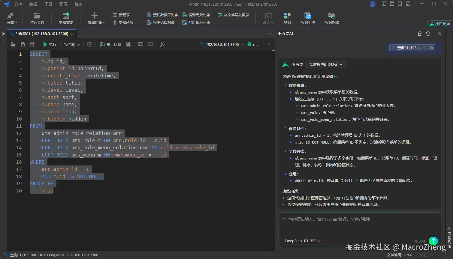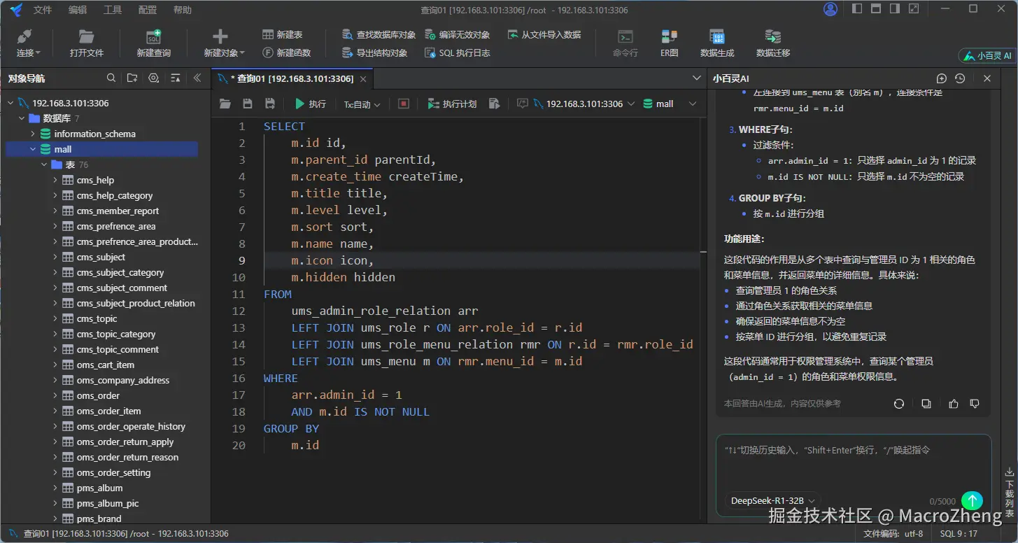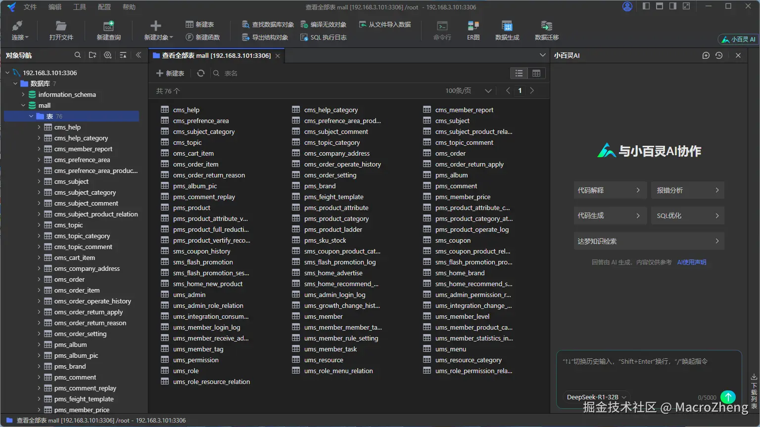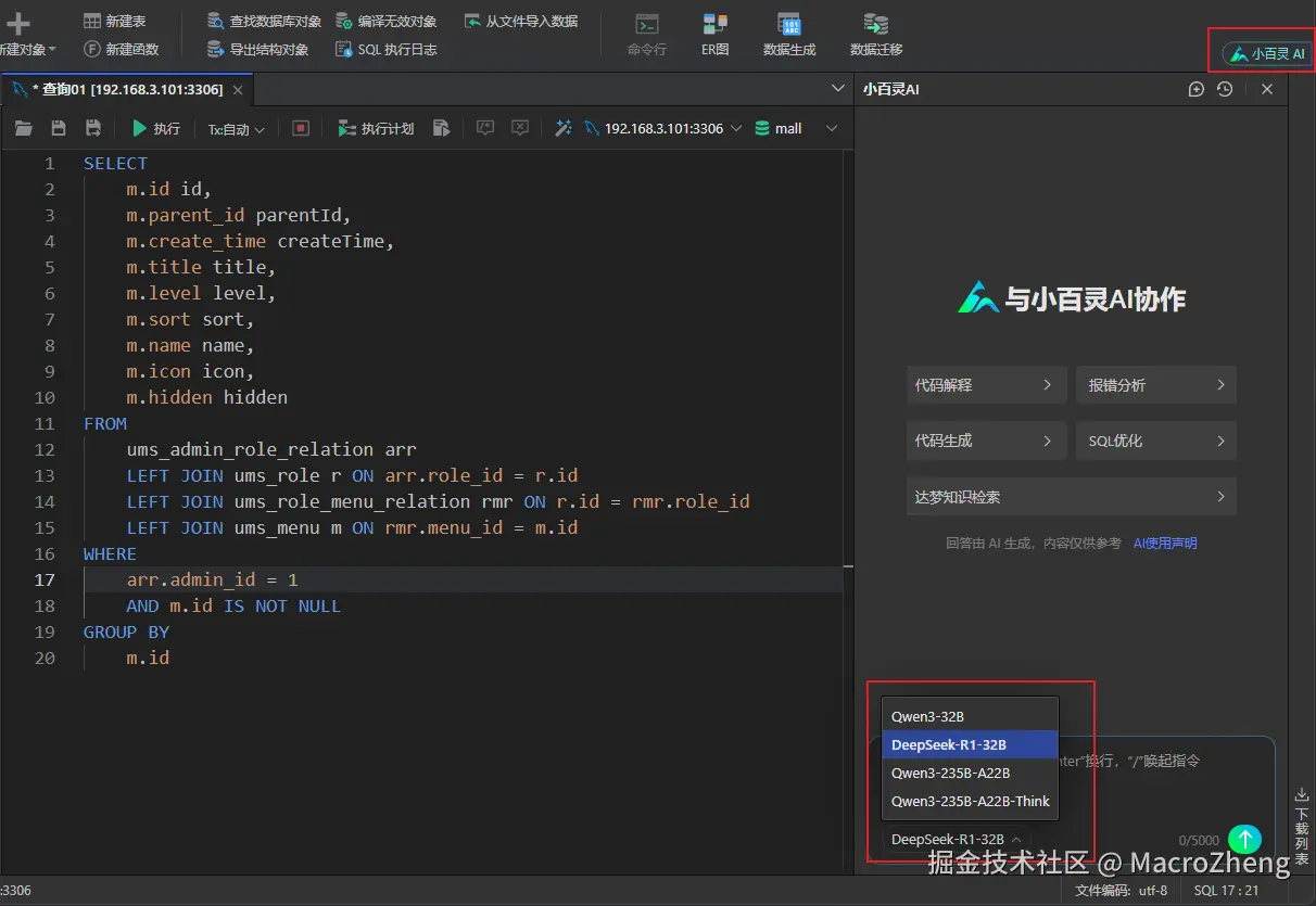 xlsx/xls/csv/txt/json/xml格式文件的数据进行导入导出操作。 - 小百灵AI功能:能提供代码解释、报错分析、代码生成、SQL优化、达梦知识检索等功能。