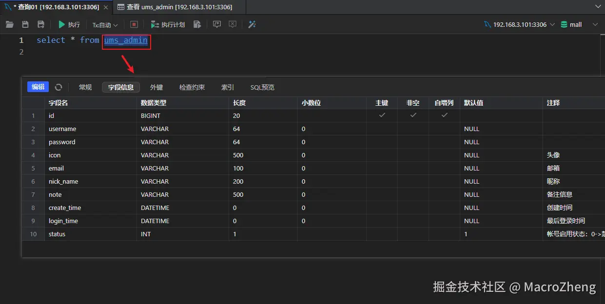 Ctrl+鼠标左键可以跳转至表结构设计窗口;