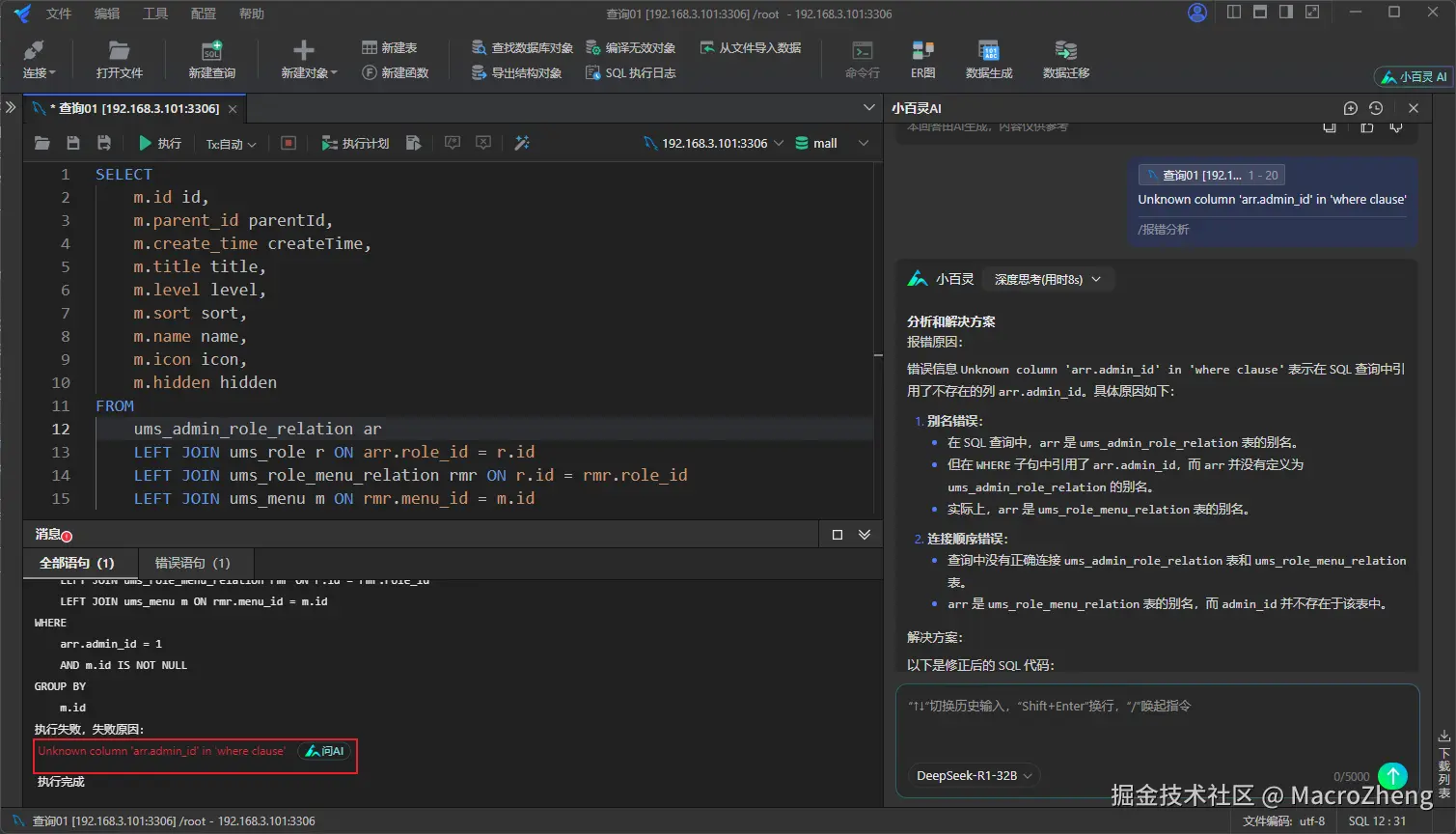 作为后端开发,我们经常需要使用数据库管理工具来操作数据库,比较常用的有Navicat。今天给大家分享一款比它界面更现代化,提示更智能的数据库管理工具SQLark,集成AI功能可以实现报错分析,希望对大家有所帮助!