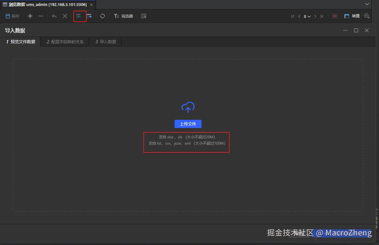 导入按钮,可以将外部数据文件导入到数据库中,也支持多种格式的文件。