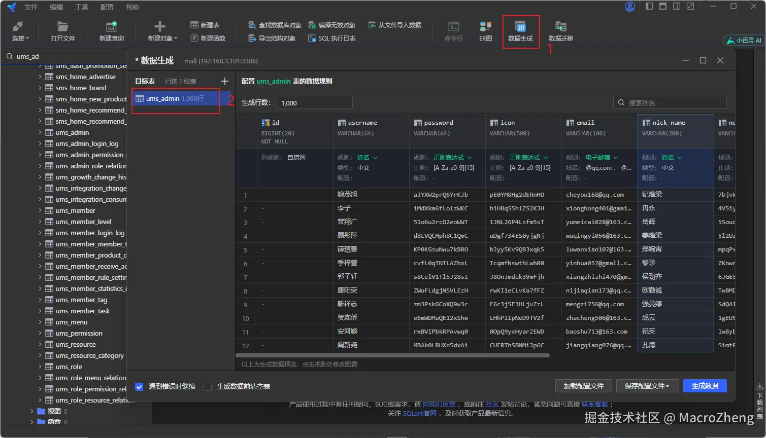 - 通过SQLark能快速生成仿真表数据,应用在开发测试环节中,点击顶部