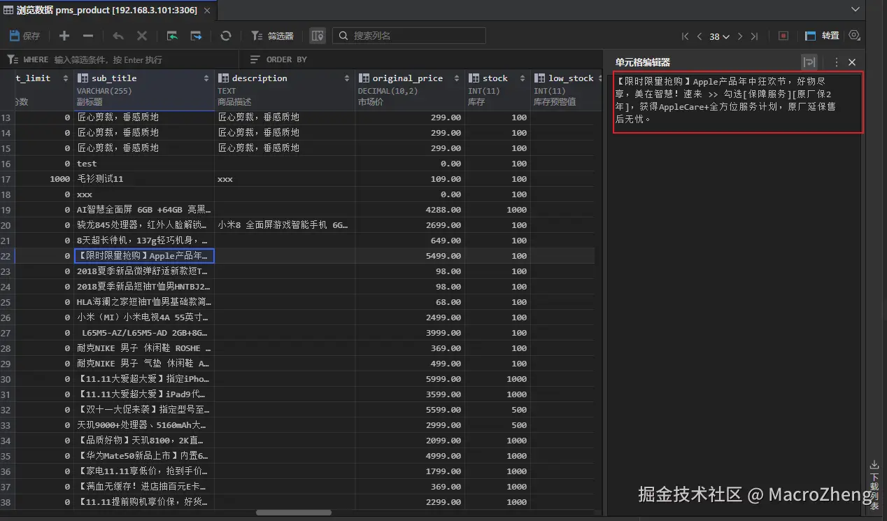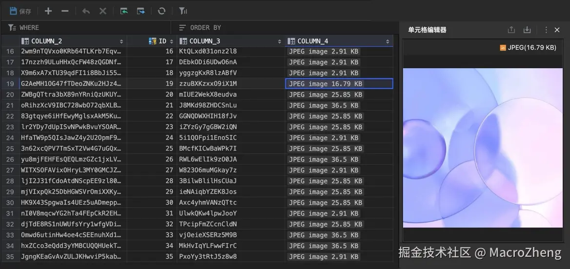 BLOB/CLOB大字段类型数据,可通过双击单元格查看完整内容。