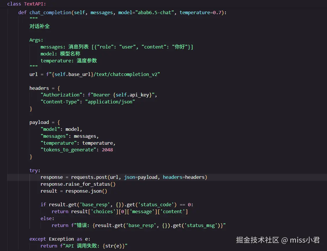 API 代码示例,代码也很简单,就几行代码,底层实现也不复杂,标准的 RESTful API 调用,很容易上手。