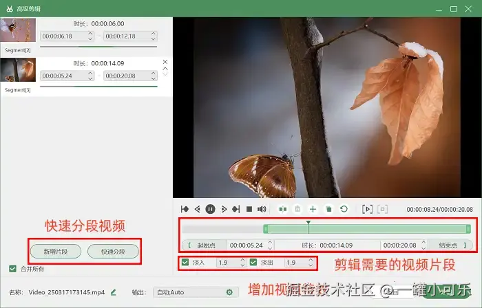 步骤3:录制结束后,软件会自动跳转至视频预览窗口。如果需要精简视频内容,直接点击预览界面的 “高级剪辑” 功能,就能快速完成视频分段、片段裁剪、冗余内容删除等操作,帮你节省大量后期处理时间。