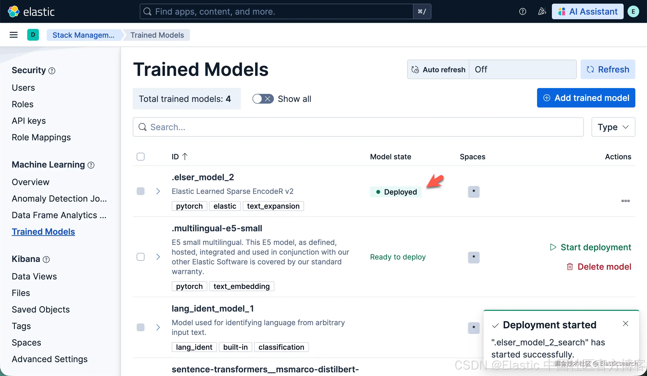 我们可以看到已经成功部署的 .elser_model_2 模型。