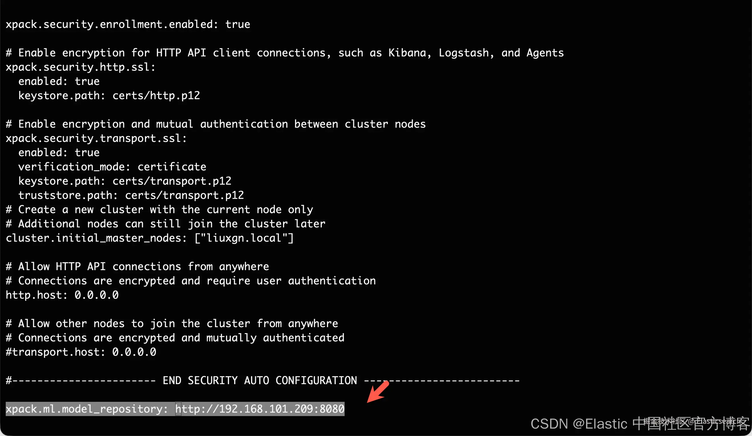 `xpack.ml.model_repository: http://{IP_ADDRESS_OR_HOSTNAME}:8080`AI写代码