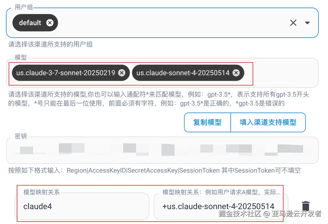 此处可配置 Amazon Bedrock 可用模型以及自定义映射关系: