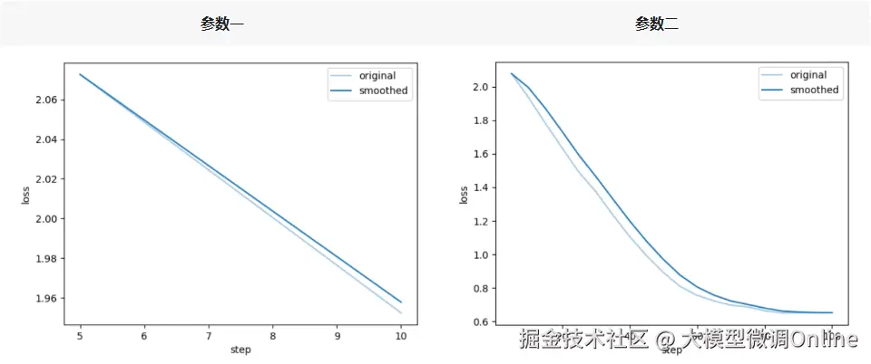 为验证上述发现,在任务模式下,我们对模型进行了两组微调实验(参数一和参数二),以评估不同配置的效果。两组实验的变量仅为 per_device_train_batch_size(32,4)和DeepSpeed(3,2)参数,其他条件完全相同。具体参数差异如下表所示: