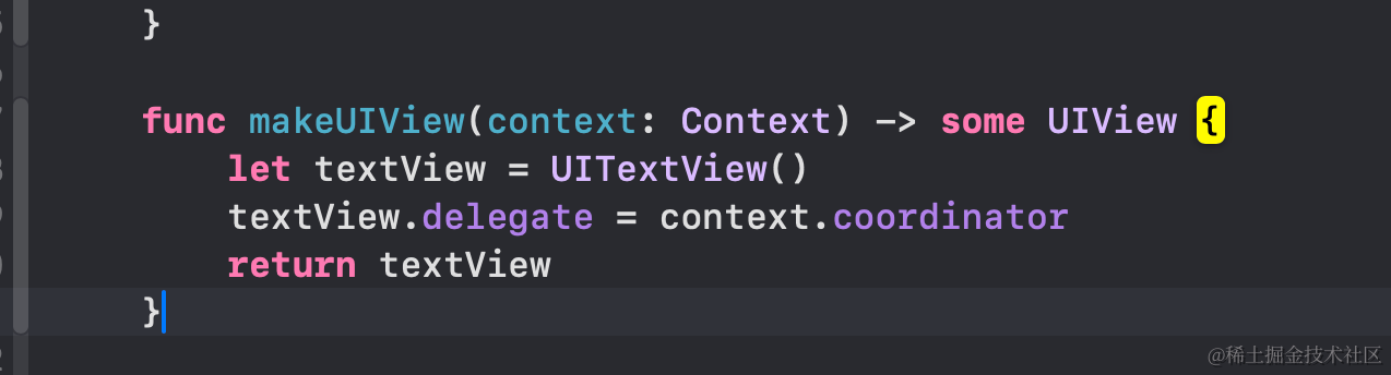 一个是makeUIView函数,用来初始化UITextView这个组件,只会执行一次,用来初始化等操作。