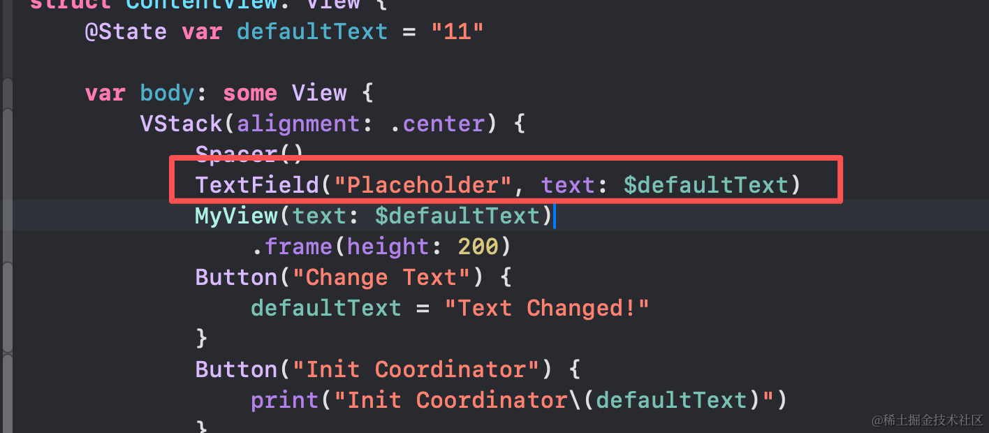 但是如果你使用swiftui中的TextField组件,你就会发现它已经实现类数据的双向绑定。