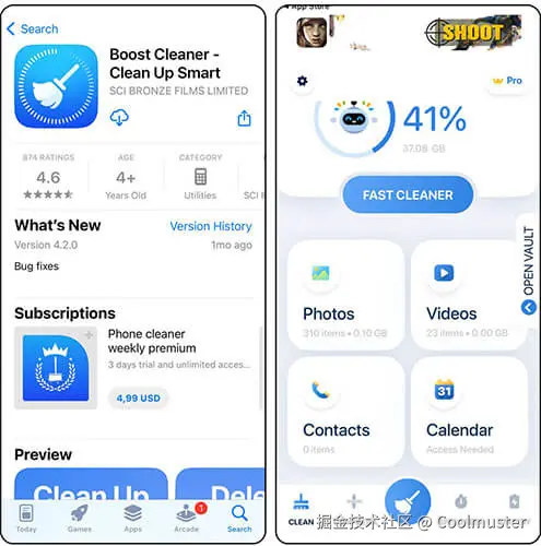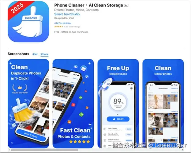 Cleanup: Phone Storage Cleaner是一款 iPhone 清理应用,在 App Store 上拥有近 20 万用户评分。它主要专注于清理 iPhone 图库中的照片和视频。该应用可以快速检测并删除重复照片、合并重复联系人,并整理您的邮箱。此外,它还提供一些有趣的附加功能,例如创建自定义 iPhone 小组件和设置独特的充电动画,让您的设备锁屏更加炫酷。