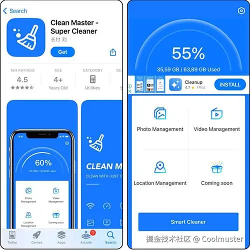 接下来要介绍的免费 iPhone 清理应用是Clean Master 。只需轻轻一点,它就能删除重复和相似的照片、屏幕截图和大视频,是少数几款能够自动完成整个清理过程的免费 iPhone 存储空间清理应用之一。