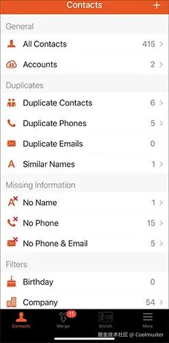 出色的联系人合并和重复联系人删除功能。