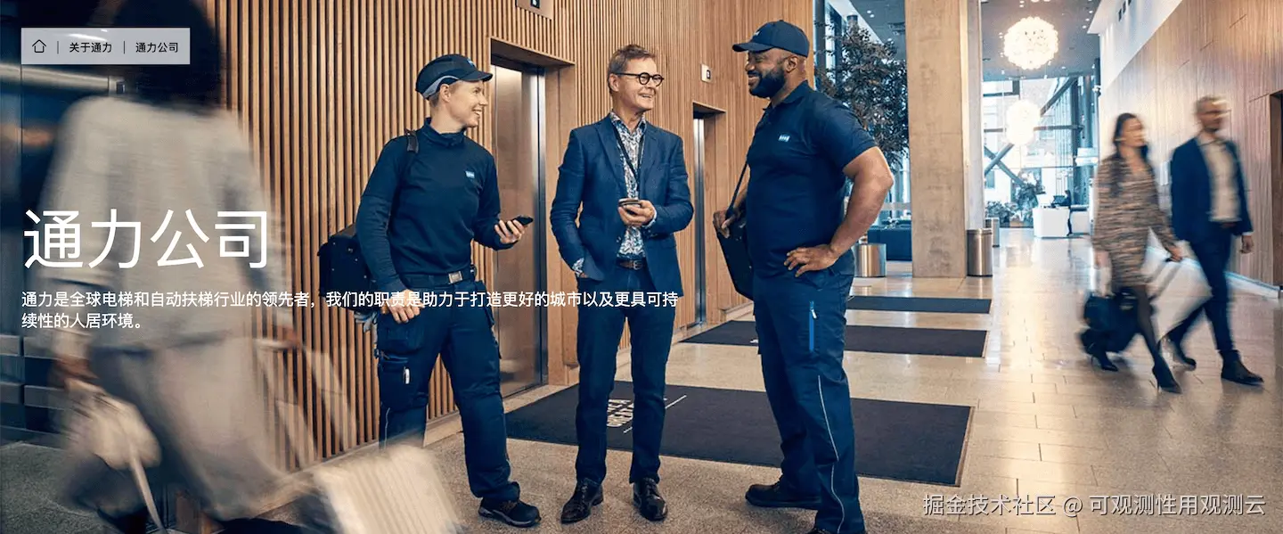 通力股份有限公司(KONE),于 1910 年创立,总部设于芬兰,是世界上最大的电梯和电扶梯制造商之一。作为双方共同服务的标杆客户,通力电梯(KONE)数字化运维工程师徐路宝表示:“接入观测云后,我们建立了一套覆盖数字化维保业务的监控体系,能够更及时地感知设备运行状态。通过打通业务、开发与运维数据,为我们的数字化转型提供了重要的数据支撑。”
