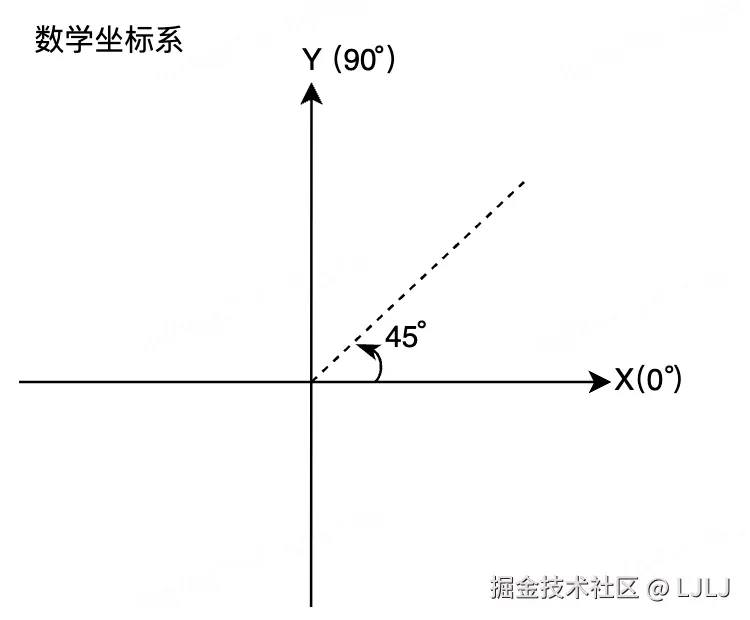 这种坐标系特点是:x轴向右,y轴向上,角度为逆时针