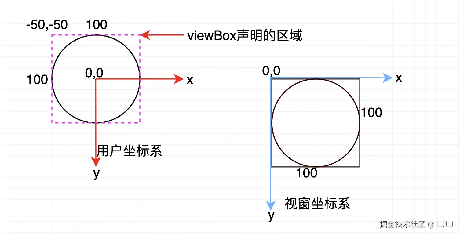 通过改变viewBox的min-x和min-y,实现了将视窗向左向上进行平移,从而看到一个完整的圆。