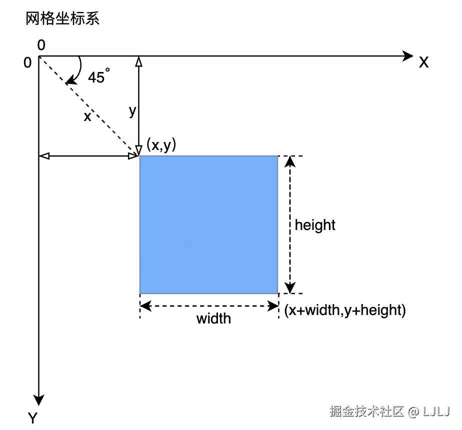 有许多计算机绘图都使用网格坐标系(Canvas、SVG、Css3-transform二位坐标系等),这种坐标系的特点有: