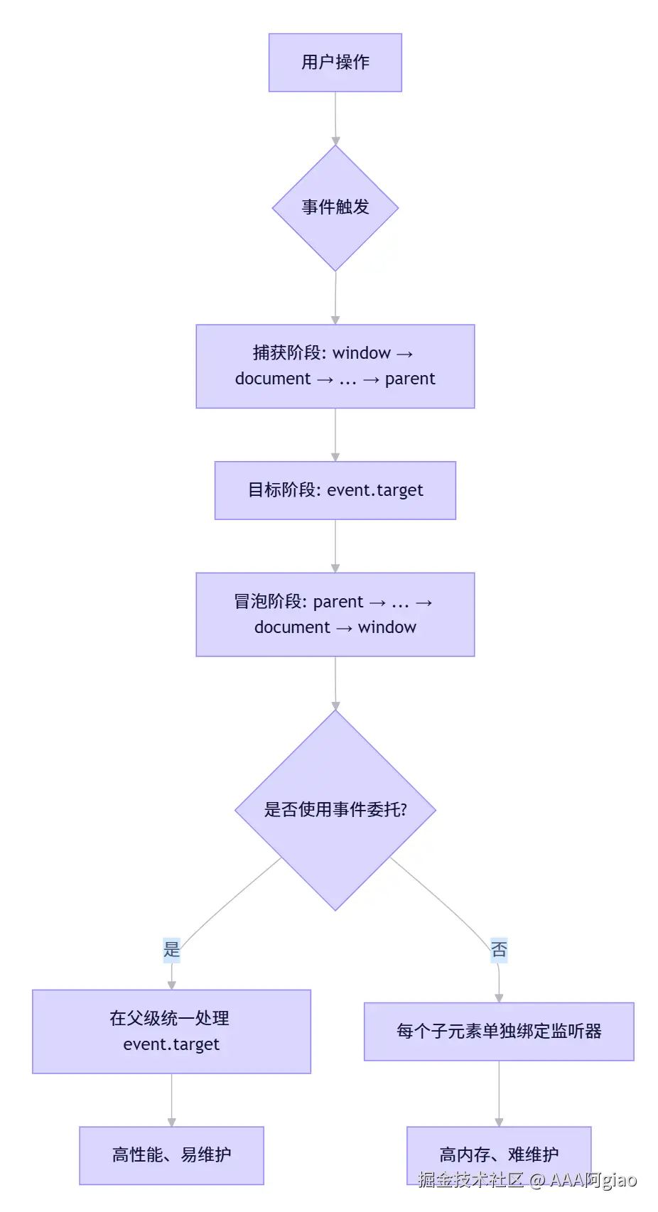 - 事件不是“点对点”,而是“树上传播”。