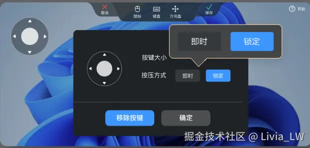 但最让我惊喜的,是它专为手游玩家设计的虚拟键盘功能。 当我在手机上远程控制电脑玩手游时,它不再是简单映射,而是提供了一个强大的自定义交互平台。