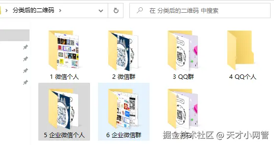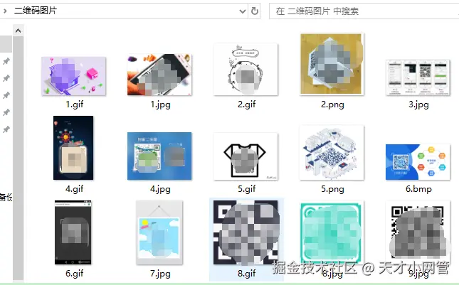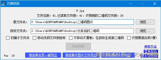 假设你有一个文件夹,从各个群中,或者不管从什么地方,弄来了很多图片,想把其中的二维码图片挑出来,并且按二维码的类型分类出来,比如分群码、个人码什么的,那就用本教程的这个【万图找码】软件。