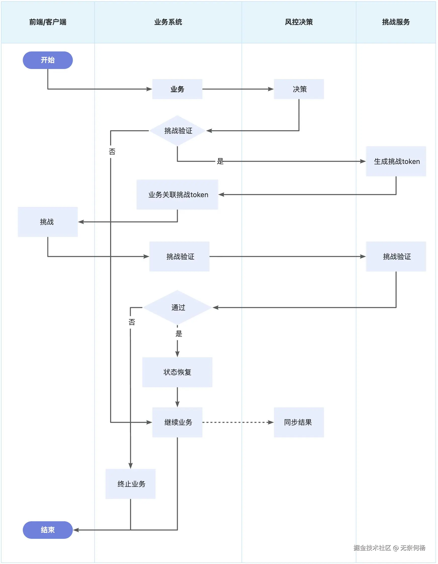 同时作为业务系统,在接入风控决策时可以自己定制化适配一套公共的接口,包含对接风控决策,对决策进行处理,联合挑战验证,保留恢复业务现场等等,除此之外最好前端/客户端也适配一套通用sdk。