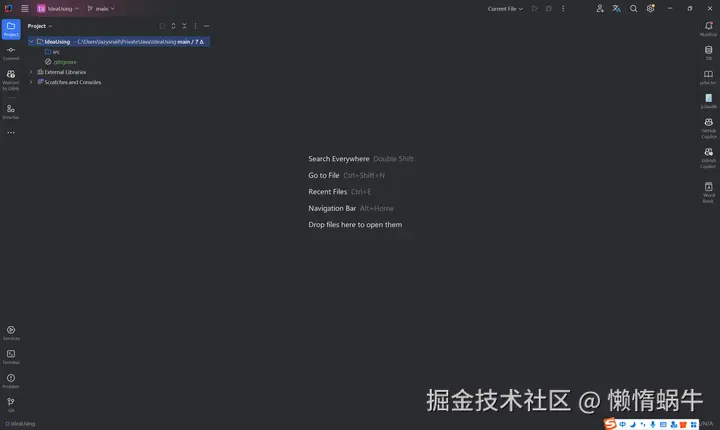 在初学阶段,左侧工具栏最长使用的就是"Project"和"Structure"。