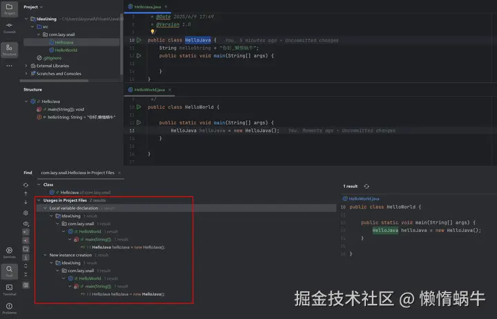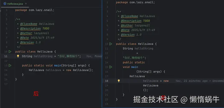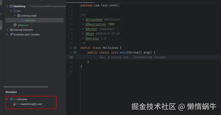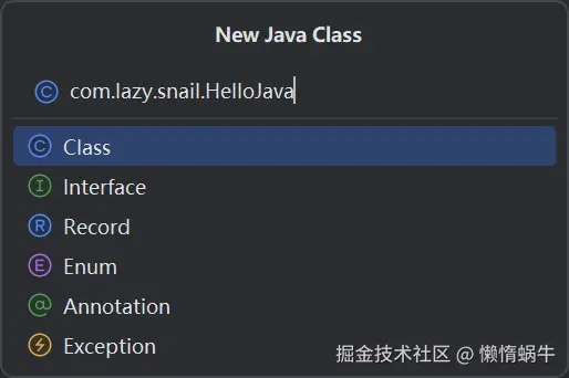 "com.lazy.snail"是包名,"HelloJava"是类名。