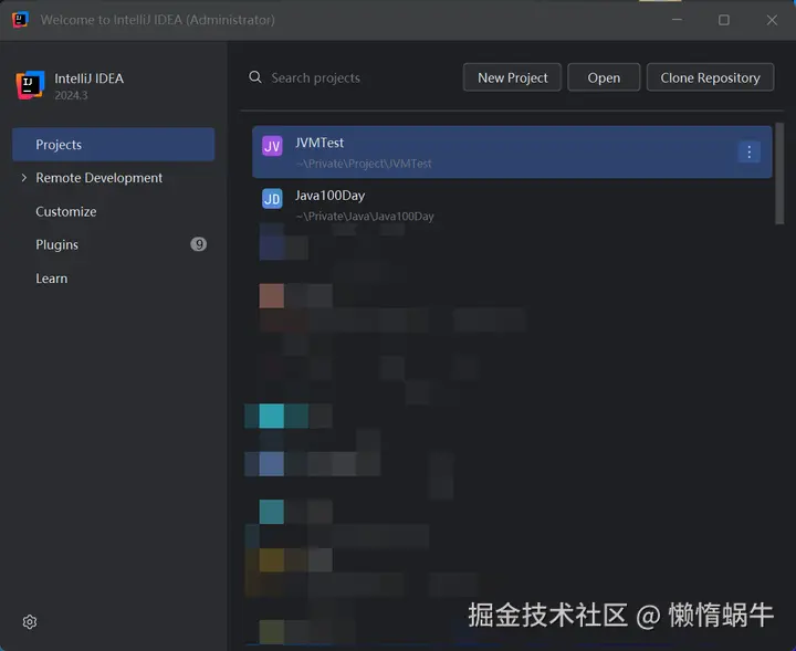 后续创建或者导入项目后,欢迎界面会列出所有的项目。