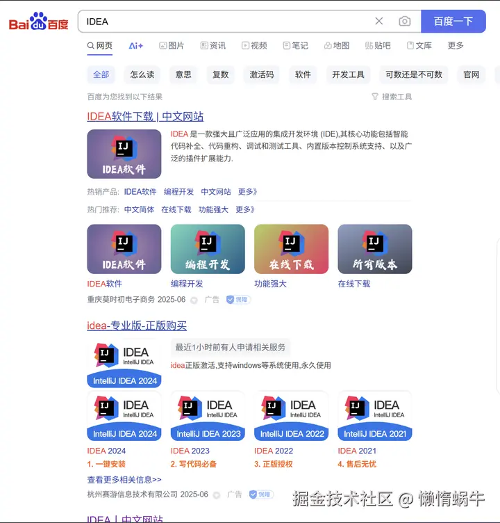 如果你去百度了IDEA,小心掉到了坑里,排在前面的全是广告或者盗版软件。