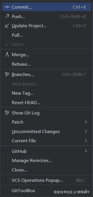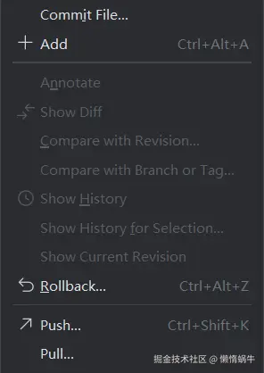 IDEA深度集成了Git、SVN等版本控制系统,让你在IDE内完成大部分版本控制操作。