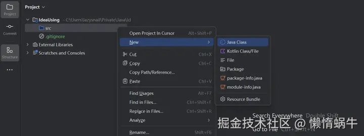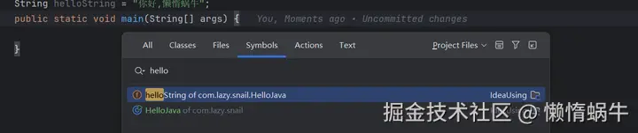 Shift + Shift 全局搜索:双击Shift键,弹出的全局搜索框。你可以搜索任何内容:类、文件、符号、配置项,甚至是IDEA的命令。熟练使用它能极大减少你在菜单中寻找功能的时间。