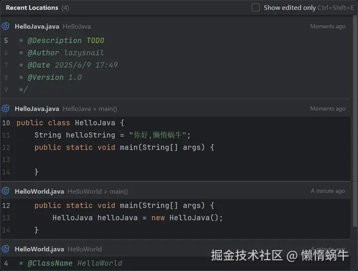 Ctrl + Shift + E 最近编辑的位置:显示你最近修改过代码的位置,精确到行。