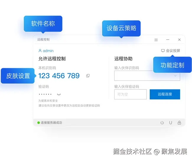 向日葵支持批量部署和软件定制,前置调整各种设置和参数,同时更换符合自己企业需求的VI,进而实现工具的整合;对于已经部署的向日葵客户端软件,也支持在云端统一调整相关设置,并实时下发至一线设备,包括本地修改访问密码、验证码更新、是否允许启动隐私屏等等。