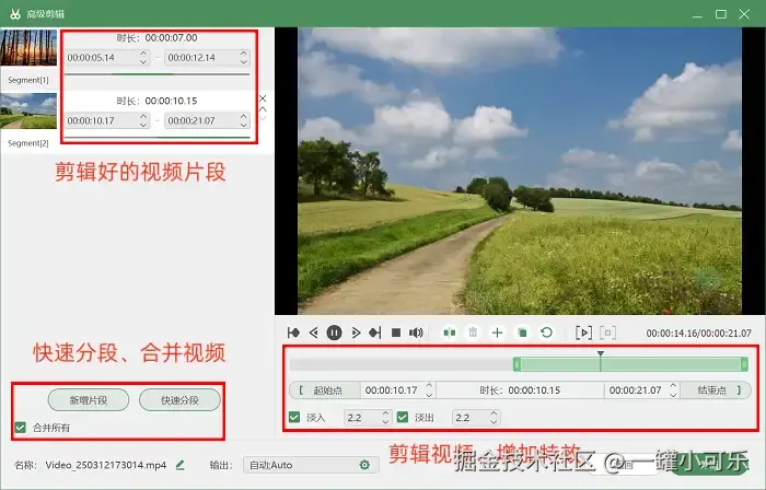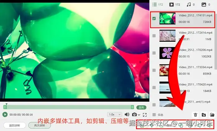 第3步:录制结束后,可以借助 “高级剪辑” 工具进行后期处理,比如添加特效、分割视频等,直接在软件内就能完成。