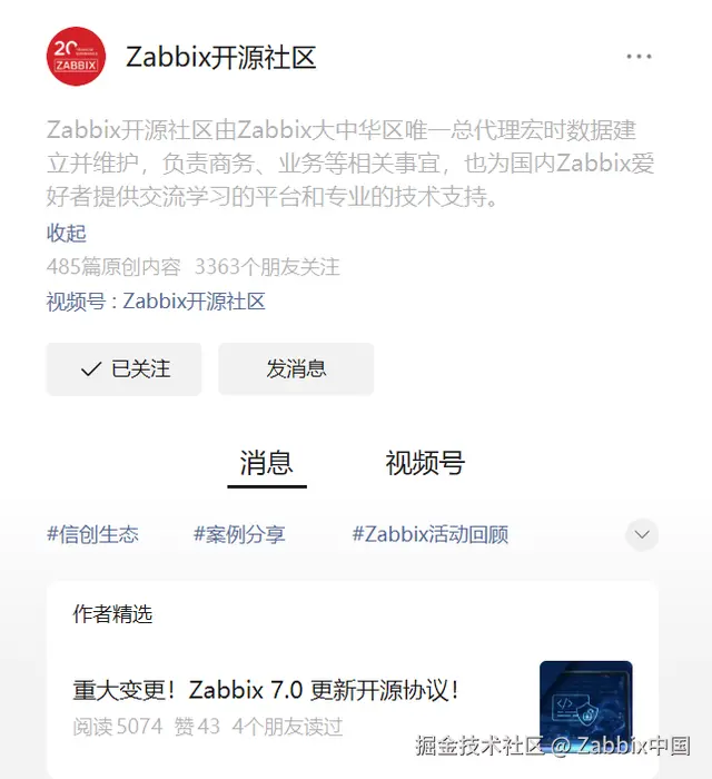 4、Zabbix 开源社区公众号&视频号-- Zabbix内容输出主要阵地