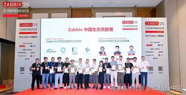 在2025年Zabbix中国峰会上,共有7位合作伙伴获得了“Zabbix五载同心”荣誉奖项,他们与Zabbix中国并肩前行超过5年,在过去的岁月里,他们与Zabbix紧密合作、相互支持,为Zabbix全球生态的发展做出了杰出贡献。