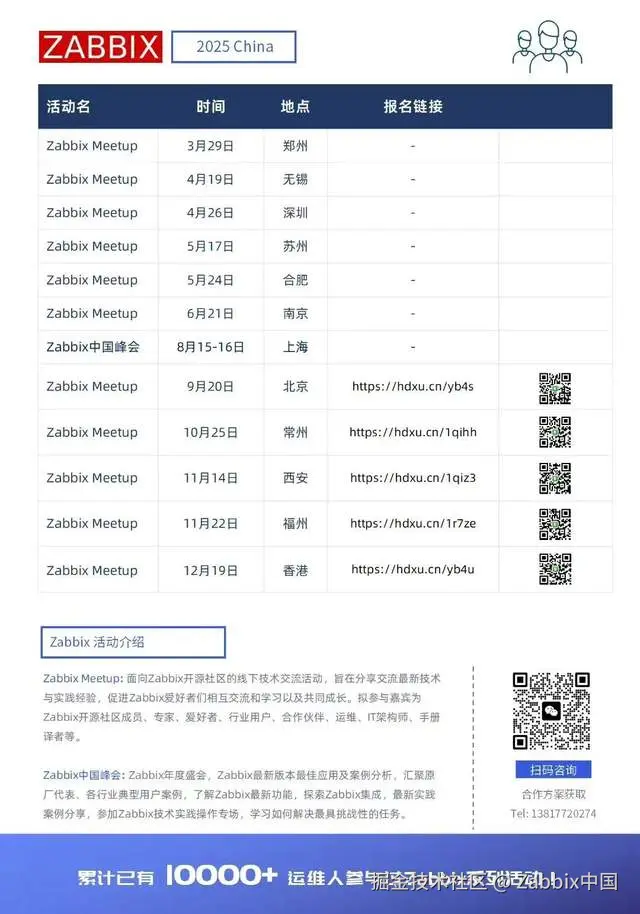 现在就行动:关注Zabbix中国社区公众号,及时获取最新活动和学习资源信息;或联系Zabbix中国【4008230118】即刻成为社区一员吧。