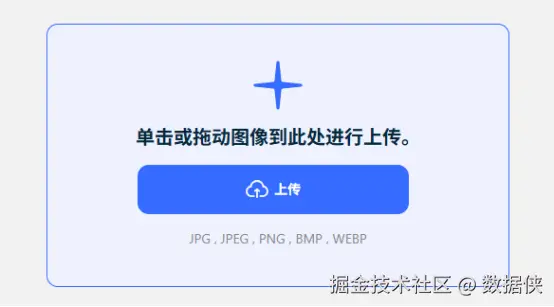 2. 上传图片: 点击“上传”按钮,选择所需的图片文件(支持JPG, JPEG, PNG, BMP, WEBP等格式)。